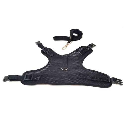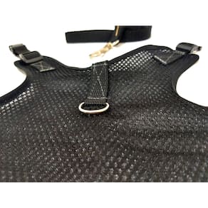 Tecido aerado spacer na cor preta; Acabamento em viés preto; Regulagem em fita de nylon e presilhas plastica; Guia de 90 cm de comprimento; Super confortável; Segura e resistente; Cor: preta; Tamanho: GG Medidas aproximadas: 42 cm de comprimento, 54 cm de circunferência torax, 34 cm de circunferência pescoço. Estilo, conforto e elegância. Marca: Nica pet