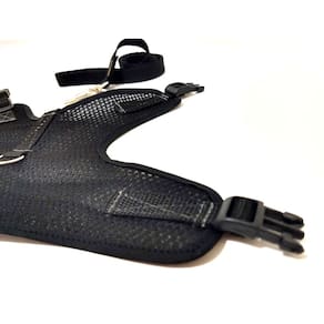 Tecido aerado spacer na cor preta; Acabamento em viés preto; Regulagem em fita de nylon e presilhas plastica; Guia de 90 cm de comprimento; Super confortável; Segura e resistente; Cor: preta; Tamanho: M Medidas aproximadas: 3 cm de comprimento, 44 cm de circunferência torax, 27 cm de circunferência pescoço. Estilo, conforto e elegância. Marca: Nica pet
