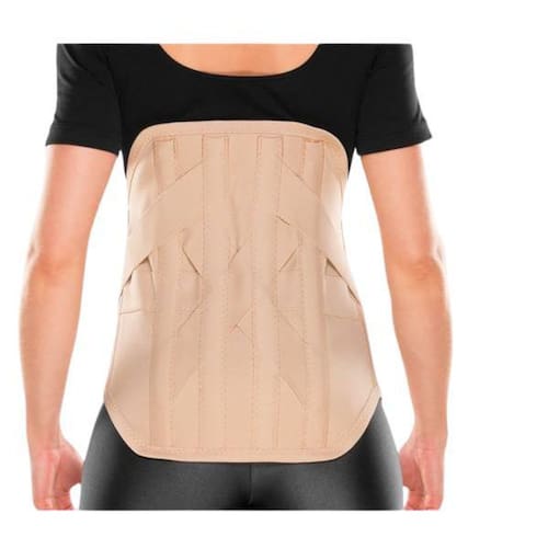 Benefícios: - Produto indicado para estabilização da coluna na região lombo-sacra em casos de hérnias de disco, operáveis ou não. - Traumatismos, espondilolisteses, fraturas osteoporóticas, artroses, lordoses, pós-operatórios e outros problemas da região que exijam estabilização. - Produto possui barbatanas de alumínio moldáveis caso seja necessário. Tamanho: P Medidas: 80 cm de largura x 35 cm de altura Forma de uso / Colocação: Siga as etapas abaixo e utilize a imagem ao lado como referência. 01 - Envolva o corpo com o colete mantendo o fecho de contato de ajuste na mão direita. 02 - Posicione as barbatanas de alumínio de forma centralizada nas costas e deixe a forma de pequena saia sobre o cóccix. 03 - Forneça a compressão adequada e fixe o fecho de contato. 04 - Ajuste as tiras laterais adequadamente, fornecendo maior firmeza e estabilização para região. Precauções: Não utilize o produto sem o conhecimento de seu médico. Molde as barbatanas de alumínio de forma anatômica ao corpo e sempre as posicione paralelamente à coluna e não sobre a mesma.