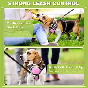 - ?Tiras refletivas e alça resistente?As tiras refletivas deste peitoral de fácil controle garantem a segurança do seu cão enquanto passeia, mesmo à noite; a alça de tecido resistente na parte traseira ajuda você a controlar melhor e ajudar seu cão. Por favor, não use a coleira para guiar seu cão se ele/ele puxar muito. O anel em D na frente do arnês seria perfeito para você prender pela coleira.