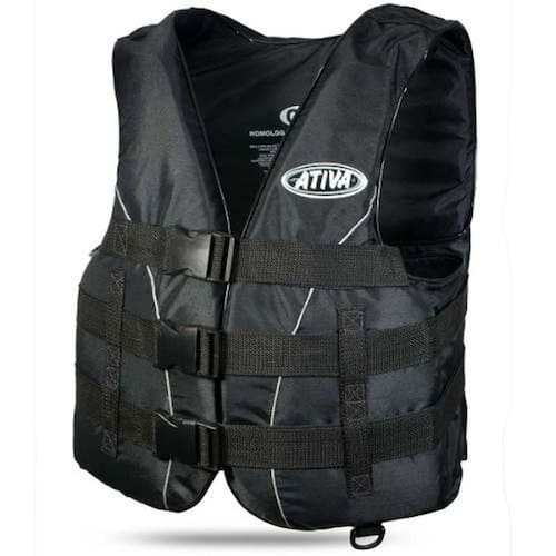 Colete Salva Vidas Homologado Marinha Ativa Tam G -até 110kgHomologado Pela Marinha do BrasilClasse V - Esportivo - Ativa - Tamanho G- Desenvolvido para esportes como, Jet Ski, banana boat, esqui aquático, windsurf, parasail, pesca esportiva e canoagem,- Desenvolvido e fabricado de acordo com a Norman 05/DPC.- Possui meia-argola para conectar a chave ao Jet Ski, em caso de queda, a chave fica presa ao condutor,- Possui espuma resistente e perfurações e imersão prolongada,- Possui acabamentos em vinil preto para maior conforto e durabilidade,- Tamanho G - de 55kg até 110kg- Disponibilidade de cor: Preto.