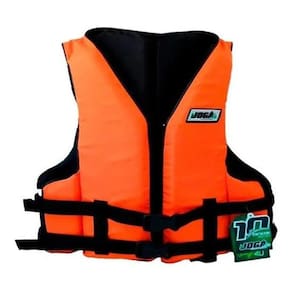 Colete Salva Vidas Jogá 110Kg Laranja - Equipamento auxiliar de flutuação EAF - Produto não homologado - Produzido com matéria prima nacional - Ajuste lateral com elástico - Fechamento frontal com zíper - 3 correias de segurança com ajuste 1 vertical com armazenamento interno - Informações e cuidados de uso na parte interna do colete. - Peso Aprox.: 400g Ean: 7899880625044