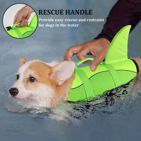 colete salva-vidas para cães - Linda barbatana de tubarão: um colete salva-vidas para cães com um design exclusivo e encantador de barbatana de tubarão veste seu filhote como um tubarão fofo; confiança inspiradora para filhotes amantes da terra se tornarem aventureiros aquáticos; bom para nadar, rafting, surf e muito mais - Flutuação superior: Coloque a segurança em primeiro lugar com nosso colete salva-vidas para cães; nosso colete de natação para cães feito com os mesmos materiais do colete salva-vidas humano, oferece excelente flutuabilidade, garantindo que seu cão permaneça flutuando durante qualquer atividade aquática; aproveite o tempo de água sem preocupações - Resgate fácil: nunca tenha medo de situações ao mar com nosso colete flutuante para cães; ele possui uma alça resistente para facilitar o levantamento da água e ajuda a ensinar cães novatos a nadar; basta segurar a alça e guiá-los até que estejam confiantes - Alta visibilidade: para garantir que seu animal de estimação esteja sempre à vista, nosso colete salva-vidas para filhotes vem em cores vibrantes para melhorar a visibilidade na água, facilitando a localização do seu cão em todos os momentos; Além disso, o gancho resistente com anel em D é bom para a coleira de cachorro - Personalizado para caber perfeitamente: nossos coletes salva-vidas para cães servem para cães pequenos, médios e grandes; seu design ajustável ao redor da barriga e do pescoço oferece amplo espaço enquanto mantém um ajuste confortável, permitindo movimento natural e uma postura de natação relaxada - Meça antes de comprar: o colete flutuante para cães é uma peça flutuante de meio comprimento que não requer cobertura total das costas para funcionar como pretendido. A circunferência do peito é a medida decisiva; se o tamanho do seu animal de estimação estiver entre dois tamanhos, peça o próximo tamanho