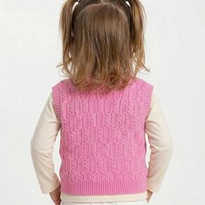 Colete Trabalhado Tricô Kids feito em tecido acrílico, gola redonda, detalhe em metal Tricô Kids na parte inferior frontal, manga longa e etiquetas personalizadas.