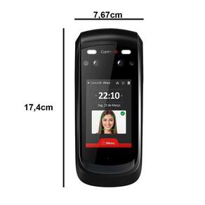 O iDFace é o equipamento ideal para monitorar e controlar a entrada e saída de pessoas através da tecnologia de reconhecimento facial. Possui alta qualidade permite detectar rostos vivos, autenticar usuários com máscara e identificar até 3.000 faces. Além disso, o dispositivo apresenta um display touchscreen de 3,5 e um software web embarcado que facilitam a gestão das regras de acesso e visualização de relatórios. Controle de Acesso Quantidade de Usuários: Capacidade para mais de 200.000 usuários cadastrados Quantidade de Faces: Capacidade para até 3.000 faces. Regras de Acesso: Regras de liberação conforme horários e departamentos Controle de Portas: Controle através do módulo de acionamento externo Sensores: 1 entrada para sensor de porta aberta Botoeira: 1 entrada de botoeira Relé de Saída: 1 relé interno ao módulo de acionamento de até 220VAC/5A Entrada Wiegand: 1 porta nativa Saída Wiegand: 1 porta nativa Comunicação Ethernet: 1 porta Ethernet 10/100Mbps nativa USB: 1 porta USB Host 2.0 Formas de Identificação Reconhecimento Facial: Duas câmeras Full HD 1080p luz visível e luz infravermelha Cartões de Proximidade Tecnologia: 125 kHz ASK Senha: Identificação de usuários através de senha numérica Interface de Usuário Tela LCD Touchscreen: Display LCD TFT colorido de 3.5 320x480 com tela capacitiva sensível ao toque Software Web Integrado: Software completo de gerenciamento de controle de acesso via browser Software de Gestão de Acesso Embarcado Áudio: Alto-falante e microfone embutidos Alimentação: Fonte externa de 12V não incluso Grau de proteção: IP65 Itens inclusos 1 - Controle de Acesso IDFace Lite Leitor Facial - Prox 125 Khz - ControlID 12 Meses Balcão Imagens meramente ilustrativas