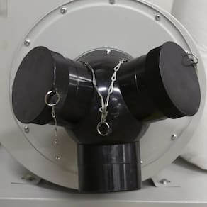 3 entradas de 100mm, podendo conectar até 3 máquinas
