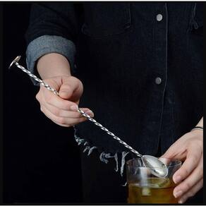 Seu corpo alongado e retorcido em espiral facilitam a mistura e também possibilitam servir a bebida de forma diferenciada, escorrendo pelo corpo da colher, como muitos bartenders fazem com bebidas gasosas.