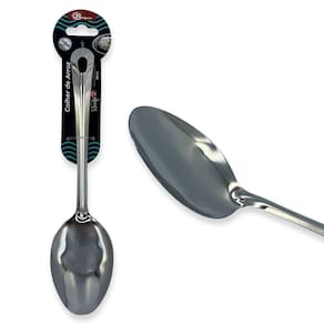 Colher de Arroz e Assados Aço Inox Utensílio culinário colher de arroz, produto inteiriço em Aço inox, sem emendas, facilitando sua higienização e utilização. Formato curvado para facilitar o modo de servir os alimentos. Vem com furinho na alça para pendurar seu item em qualquer lugar. ESPECIFICAÇÕES: -Material: Aço Inox Dimensões: 26cm comprimento x 6cm largura -Peso: 50g -Dimensão: Largura 08mcm Altura 30cm Comprimento 10cm CONTÉM: 01 Colher de arroz Inox
