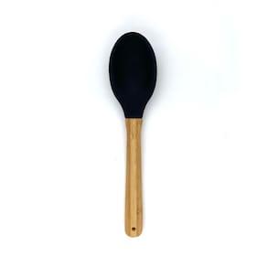 Colher de Cozinha Le Bamboo em Silicone Preto com Cabo de Madeira