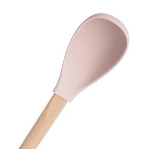 Funcional, a Colher Blush com bojo em silicone e cabo em madeira, é resistente e pode ser utilizada em superfícies antiaderentes, pois não as danifica. O bojo em tom rosado traz um toque moderno, perfeito para servir com estilo, unindo beleza e utilidade no dia a dia.