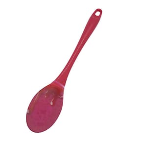 Colher Multiuso Os utensílios em silicone são ideais para uso em panelas com revestimentos antiaderentes como cerâmica, teflon, alumínio, etc, pois não arranham a superfície.Suporta até 180 graus Composição: Ponta de silicone e Cabo de acrílico Dimensões aprox.: 30cm x 6cm