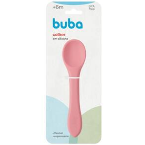 Colher de Silicone para Bebê Buba Rosa +6m Introducao Alimentar Flexível.