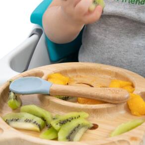 01 x Colher de Bambu e Silicone Azul para Bebês Antimicrobiana