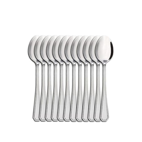 A Colher de Sobremesa Atenas é perfeita para compor a mesa. Além de seu design moderno, é produzida em aço inoxidável, que garante mais resistência e durabilidade. De fácil lavagem e armazenamento. CUIDADOS: - Para manter seus talheres sempre brilhando, lave com esponja macia, sabão ou detergente neutro. Produtos abrasivos, como palha de aço, podem riscar e prejudicar o brilho.- É recomendável o uso de água quente para dar mais brilho a peça- Não guarde em local úmido, pois a umidade pode provocar manchas FICHA TÉCNICA: Acompanha 12 peças da Colher de Sobremesa Atenas.Medidas: 16,8cm x 4cm x 1,5cm Comprimento x Largura x Altura Peso Unit. Aprox.: 34 GrsPeso Total Aprox.: 408 Grs Ref.: 0013 Marca: Ad Importação