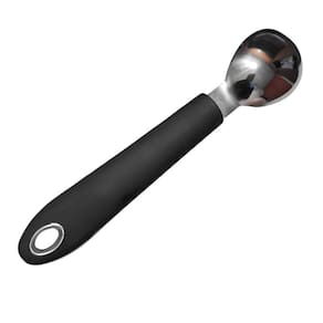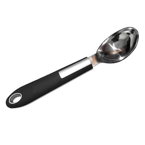 Colher de sorvete tipo concha. Em aço inox e polipropileno. Produto não perecível. Validade indeterminada. Capacidade 45 ml. Comprimento 29,5 cm, largura 4 cm. Peso 90 g. Para melhor desempenho recomendasse molhar a colher antes de cada retirada de sorvete. Garantia do fabricante por 90 dias.