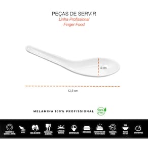 Contem: 5 Colheres Finger Food Medidas: 12,5 x 4 cm Peso: 15 gramas Material: 100% Melanina