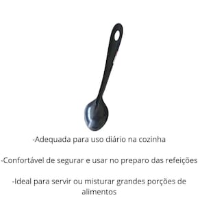 A Colher Grande de Plástico Preta é perfeita para quem busca praticidade e resistência no preparo das refeições. Produzida em plástico de alta durabilidade, é ideal para mexer, servir e misturar alimentos sem danificar panelas com revestimento antiaderente. Seu formato ergonômico oferece firmeza e conforto durante o uso, enquanto o design moderno na cor preta combina com qualquer estilo de cozinha. Essencial para o dia a dia, essa colher une funcionalidade e elegância, tornando o ato de cozinhar muito mais prático e seguro. Especificações: - Marca: Plasutil; - Modelo: 006510; - Dimensões: 29 x 6,5 x 5 cm; - Cor: Preto; - Material: Plástico; - Aplicação: Mexer, servir e porcionar alimentos durante o preparo ou na hora das refeições; - Recomendações: Não deixar em contato direto com superfícies muito quentes para evitar deformações; - : 3 meses 90 dias . Conteúdo da embalagem: -01 Colher Grande de Plastico Preta. Marca: Não Informado Ean: 7896042065106