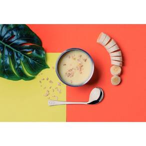 Colher curvada permite que a criança leve a comida mais facilmente até a boca, especialmente criada para incentivar e auxiliar no desenvolvimento das crianças.