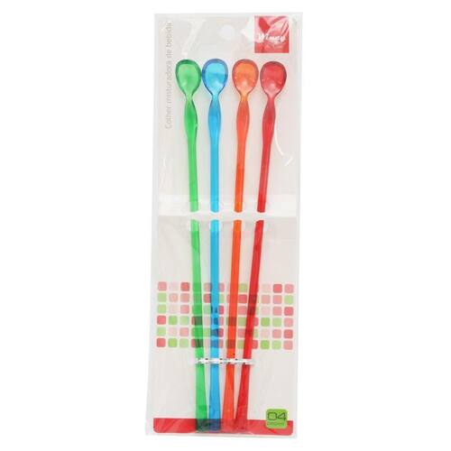 Colher Longa para Bebidas 27Cm Plástico com 4 PeçasÓtimo conjunto para bebidas, perfeito para colocar no seu restaurante, bar, casa, para servir sucos, com um toque mais bonito.Contém 4 colheres de tamanhos iguais, com cores diferente.Medidas: 27 cm Material: Plástico Marca: Não Informado