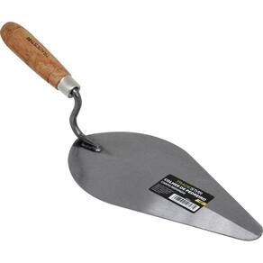 49405 - colher de pedreiro canto redondo 10 - colher de pedreiro canto redondo 10, em aço carbono com cabo de madeira, ferramenta de uso manual. Indicada para trabalhos na construção civil, denominada comercialmente colher de pedreiro.