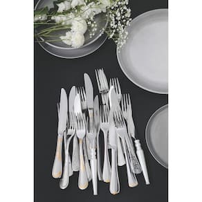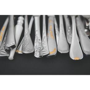 - De aço inoxidável, altamente durável, mantém as características , preservando a beleza, higiene e durabilidade do material. - Acabamento brilho e fosco. - Peça com cristais no cabo.