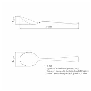 Colher Para Chá Tramontina Berlin Brilho Em Aço Inox Tramontina Colher para Chá Tramontina Berlin Brilho em Aço Inox Tramontina - Momentos com chá são sempre aconchegantes e especiais. Com a Colher para Chá Tramontina em Aço Inox da Linha Berlin Brilho você vai ter uma peça prática e essencial para desfrutar desses momentos. Produzida totalmente em aço inox, ela é altamente durável e higiênica. Possui bojo com formato simétrico e bordas cuidadosamente arredondadas, proporcionando maior conforto no uso. O acabamento em alto brilho dá um toque de elegância à peça. De fácil limpeza, pode ser lavada diariamente na máquina de lavar louças. Características Gerais do Produto: Garantia: - 90 dias de garantia legal para defeitos de fabricação