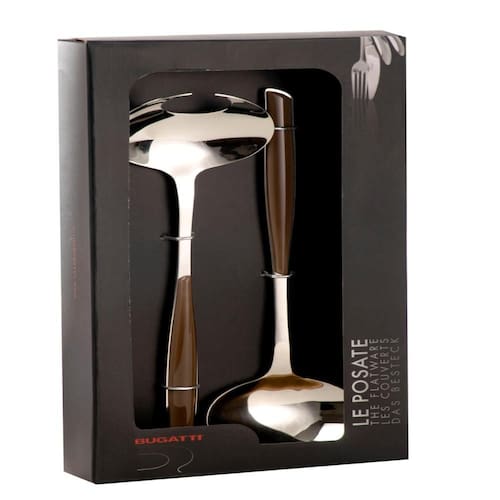 O Jogo de 2 peças para salada da Linha Glamour da Bugatti contém 1 garfo e 1 colher para salada.