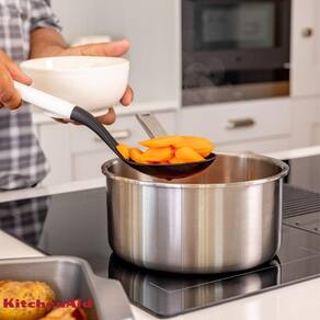 Sua cabeça perfurada em nylon durável permite drenar líquidos e gorduras com eficiência, sendo perfeita para servir massas, legumes ou frituras.