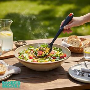 A Colher para Servir da Bakers Secret oferece praticidade e precisão em cada preparo, graças às suas medidas internas de 40ml e 15ml, perfeitas para porcionar e servir com mais controle.