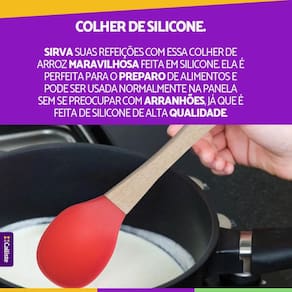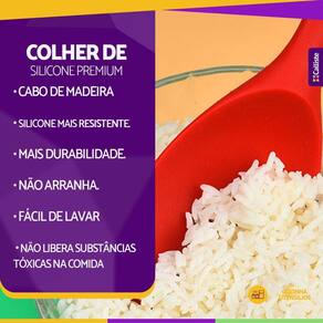 Colher Silicone Com Cabo De Madeira Arroz Não Risca Panela