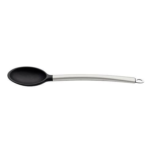 Colher Silicone Para Servir Apreciatta Tramontina 25801100 A versatilidade da linha torna as peças importante no uso diário. Compostos por aço inox e lâminas de silicone - ideal para uso em utensílios revestidos com antiaderente - a Linha Apreciatta tem design moderno, valorizado pelo contraste dos materiais, e pode ser pendurado, harmonizando a decoração de sua cozinha. Pode ser levado à máquina de lavar louças.