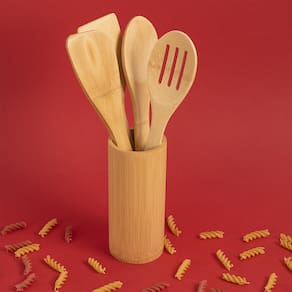 Colher Vazada de Bambu Mozcada 30cm Orgânica Multiuso