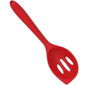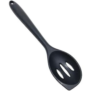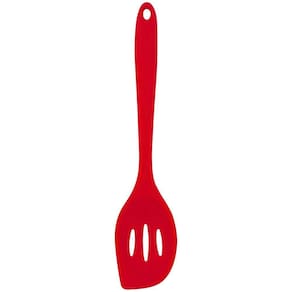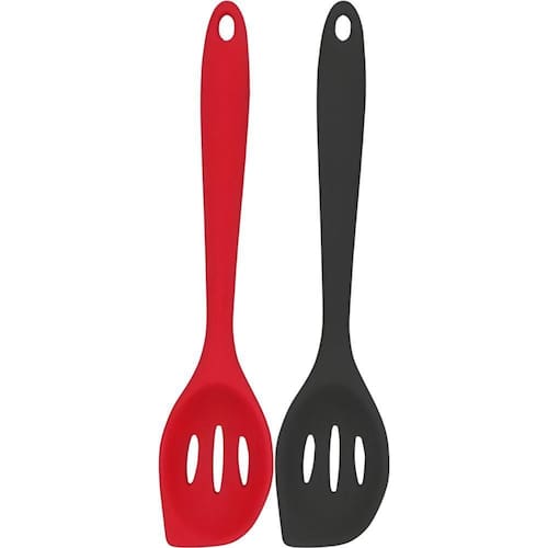 Colher Vazada de Silicone CK4416 para Cozinhar e Servir com Furos para Escoamento e Ponta Espátula Preto Vermelho Clink