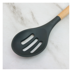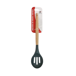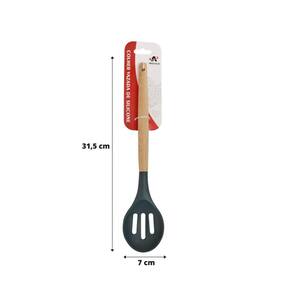 COLHER VAZADA DE SILICONE COM CABO DE MADEIRA 31,5CM - 3277.