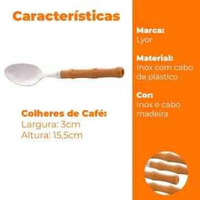 Jogo de Colheres de Café e Sobremesa em Inox com Cabo de Plástico Bambu - Lyor