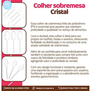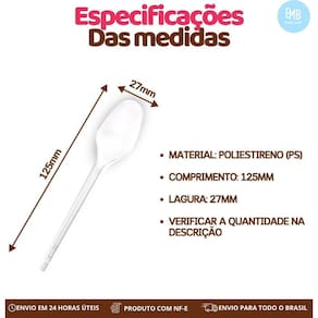 Contém: 100 Unidades De Colher Transparente Comprimento: 12.5cm x Largura: 2.7cm