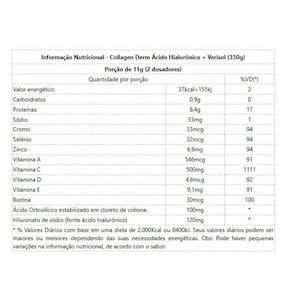 Collagen Derm ácido Hialurônico + Verisol (330g) - Sabor: Cranberry Com Morango Collagen Derm Ácido Hialurônico + Verisol (330g) Collagen Derm - Nutrify é uma formulação completo, que reúne os ativos mais importantes e comprovadamente eficazes para a saúde da pele, unha e cabelos. Cada porção fornece 8,4 g de proteínas provenientes de colágeno hidrolisado, 120mg de ácido hialurônico, 100 mg de ácido ortosilícico estabilizado em colina e 2,5 g de Verisol, que auxiliam na recuperação da firmeza dos tecidos. Sua formulação conta ainda com as vitaminas A, C, D, E, melhorando sua aparência. Biotina e os minerais Zinco, Selênio e Cromo, que favorecem a absorção dos peptídeos de colágeno e promovem o fortalecimento de unhas e cabelo. Todos os ativos do Collagen Derm juntos são poderosos para a beleza; o ácido ortosilícico é encarregado pelo aumento da síntese das proteínas da beleza, como o colágeno, elastina e queratina, a biotina é uma vitamina fundamental para a produção de queratina, e os minerais e vitaminas para complementar a fórmula, ajudando assim na prevenção contra os radicais livres e melhora de absorção de colágeno na pele. Benefícios: - 120 mg de Ácido Hialurônico Haplex Plus;- 100 mg de Ácido Ortosilícico;- 2.5 g de Verisol;- 9 g de Peptídeos de Colágeno Hidrolisado;- 30 mcg de Biotina;- Pele mais hidratada e com menos rugas;- Melhora a saúde da pele, cabelos e unhas.