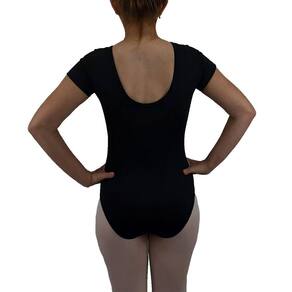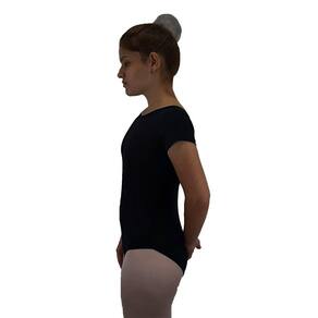 O collant Tatiana, fabricado em poliamida e elastano, se ajusta muito bem ao corpo, proporcionando muito conforto durante os exercícios. Possui manga curta e recorte em U, com cava na parte das costas.