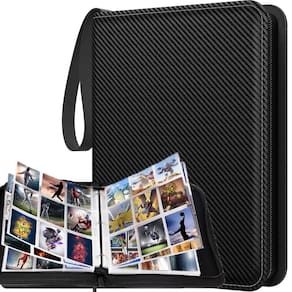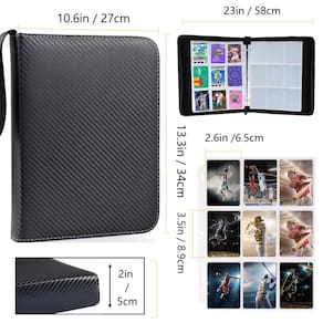 Características: Compatível com diferentes tipos de fichários colecionáveis de tamanho padrão Expansível e recarregável Impermeável e estável Feito com materiais supermacios, fácil de segurar e muito confortável Perfeito como presente de Natal, Dia de Ação de Graças, Halloween, etc. Especificação: Material: couro de poliuretano Tamanho: 10,6 “L x 13,3" L x 2" H Área de uso: armazenamento de cartões de jogo Dicas quentes: A resolução do monitor varia e pode haver algumas diferenças de cor O pacote inclui: 1 x encadernador de cartas colecionáveis -?Grande capacidade?encadernador de 9 bolsos para jogos e cartas esportivas: 10,6" L x 13,3 “L x 2" A, com 50 páginas protetoras removíveis de dupla face para armazenar até 900 cartões de tamanho 2,6 x 3,5 polegadas. -?Materiais premium?Esta capa de álbum é feita de excelente couro PU+material PP, à prova d'água e à prova de poeira, pode proteger bem seus cartões. A fivela interna de 3 anéis é feita de aço inoxidável de alta qualidade e é conveniente para você adicionar ou remover folhas à vontade. O design da pulseira facilita o transporte e o compartilhamento do cartão com sua família e amigos. -?Proteções completas?O design de carregamento superior das capas para cartões é propício para a inserção do cartão e evita que os cartões caiam ou se infiltrem na bebida. O zíper suave se beneficia de fechar ou expandir, evitando novamente que o cartão escorregue e protegendo a privacidade. -?Amplas aplicações?Adequado para uma variedade de cartões colecionáveis de tamanho padrão: cartas de futebol, cartas de beisebol, cartas de baralho, cartas de jogo, jogos de cartas MTG TCG, cartas yugioh, cartas de jogos de tabuleiro, fotos de 3 polegadas, cupons, cartões de visita, cartões de crédito, vales-presente ou outros cartões, etc. Ótimo para armazenamento e exibição de cartões. -?Portátil?Projetado para amantes de cartas colecionáveis! A pulseira portátil permite que você leve o encadernador para onde precisar. O encadernador de cartões oferece uma experiência de textura diferente.