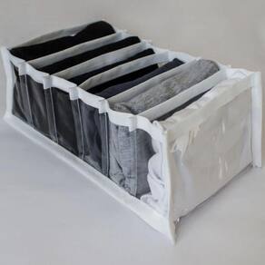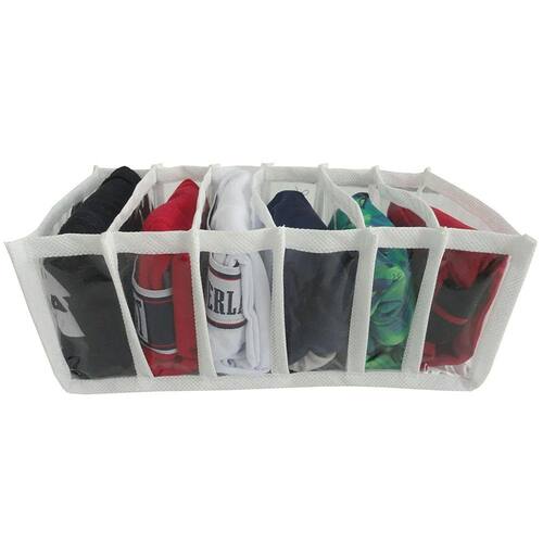 Colmeia Organizadora de Cuecas com 6 Divisórias em TNT Branco Plástico Transparente.