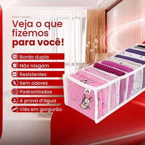 O diferencial das colmeias organizadoras está em seu material de alta qualidade. Elas são fabricadas em plástico cristal com acabamento em viés gorgurão que garante maior resistência. Essa colmeia de roupa tem borda dupla, não rasga, é inodora e à prova d'água.