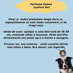 Colônia Confort Pet 60ML Com Fragrância Deixe seu pet ainda mais cheiroso com o Perfume Pet 60ml Avelã e Cereja Desenvolvido especialmente para cães, sua fórmula suave e segura proporciona um cheirinho delicioso e duradouro, com a combinação perfeita entre o doce da cereja e o toque amendoado da avelã. Ideal para usar após o banho, o perfume ajuda a manter a sensação de limpeza e frescor por muito mais tempo, sem agredir a pele sensível dos animais. Marca: Não Informado Ean: 7909700017451