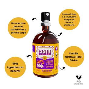 A Deo Colônia Lola Xêro Gengibre e Flor de Laranjeira é perfeita para desodorizar e perfumar suavemente a pele do corpo. Com uma perfumação cintilante de frutas cítricas e o envolvente Gengibre, essa colônia é fresca e atemporal. Ela contém 90% de ingredientes naturais, não possui ingredientes de origem animal e não é testada em animais.