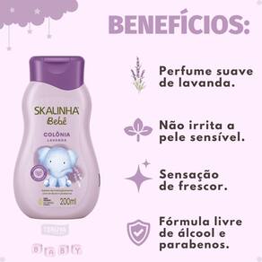 Colônia Skalinha Bebê Lavanda 200ml A Colônia Skalinha Bebê Lavanda 200ml da SKALA foi especialmente desenvolvida para proporcionar uma sensação agradável de limpeza e frescor, envolvendo seu bebê em uma fragrância suave e delicada de lavanda. Com uma fórmula cuidadosamente elaborada, esta colônia é a escolha ideal para pais que buscam um produto seguro e eficaz para a pele sensível dos pequenos, garantindo bem-estar e um perfume duradouro sem irritações. Ideal para uso diário, a colônia Skalinha Bebê Lavanda oferece um toque de carinho e proteção para a pele do seu bebê, mantendo-o perfumado e confortável ao longo do dia.