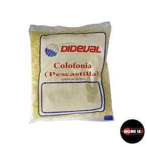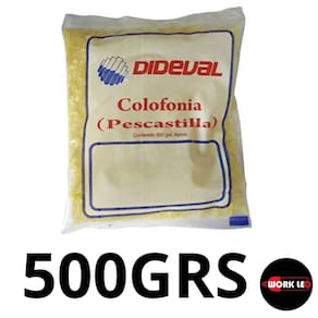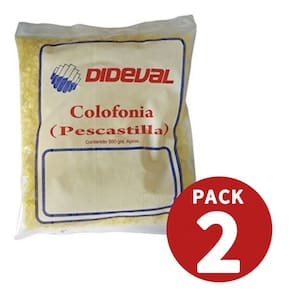 COLLOFONIA 500GR PESCATILLA DIDEVAL PACK 2 UNITED Modelo: Colophony (Pescastilla) CONTEÚDO: 500 grMarca: Desvalorização: Pode ser usada para fazer vernizes oleosos, fixador de tinta e como adesivo. Solúvel em álcool, cetonas, essência de terebentina, hidrocarbonetos aromáticos, etc. Também é utilizado como aditivo na fabricação de sabonetes, pois funciona como endurecedor e evita que envelheçam a curto ou médio prazo. As aplicações da colofónia são variadas e, entre elas, o uso em adesivos, cola de papel, tintas, vernizes, resinas sintéticas, desproporcionais, hidrogenadas, resinas oxidadas, tecidos, indústria de borracha e outros.