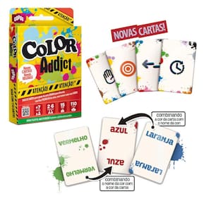 Livre-se de suas Cartas o mais rápido possível sobrepondo palavras, cores, os dois ou o oposto... Color Addict é um jogo de cartas não recomendado para cardíacos, gatos cinzentos, elefantes cor-de-rosa, homenzinhos verdes, lobos brancos, etc.