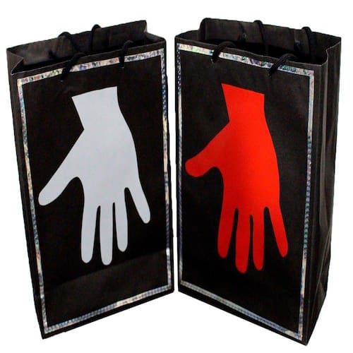O mágico mostra uma sacola comum completamente vazia. Na parte externa contém a estampa do formato de uma mão nas cores branca e vermelha. O ilusionista está usando luvas pretas, ao encostar a mão dentro da sacola as luvas mudam de cor num piscar de olhos!