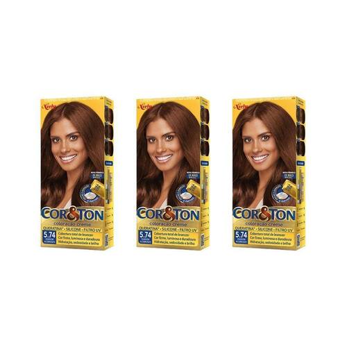 Coloraçao Cor&Ton 5.74 Marrom Acobreado 50G-Kit C/3