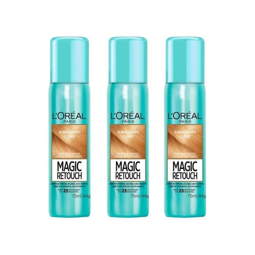 Descrição O corretivo instantâneo Magic Retouch é um spray que cobre as raízes brancas em apenas 3 segundos. O corretivo instantâneo Magic Retouch de L'Oréal Paris possui 75 ml, é uma maquiagem para cabelo, retoque de raiz, spray instantâneo e cobre temporariamente os fios brancos. Sai com shampoo, dura até 25 aplicações, retoca a raiz e é um pray instântaneo. São 5 tonalidades, escolha aquela que mais se adequa a cor dos seus fios, e fique com cabelo incrível e renovado em apenas alguns segundos Indicado: Para cabelos normais.