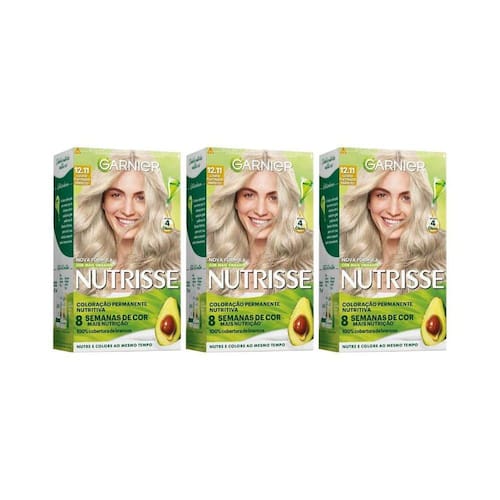 A coloração Nutrisse 12.11 Louro Platinado Perfeito é um tom de loiro claro com reflexos platinados, projetado para proporcionar um resultado final de cabelo loiro platinado perfeito. É uma coloração permanente que oferece uma cobertura completa dos fios brancos e uma cor vibrante e duradoura. A fórmula Nutrisse contém ingredientes nutritivos, como óleo de abacate, óleo de uva e manteiga de karité, que ajudam a nutrir e hidratar os cabelos durante o processo de coloração. Isso ajuda a minimizar danos e a deixar os fios macios, sedosos e brilhantes. Antes de aplicar a coloração Nutrisse 12.11 Louro Platinado Perfeito, é recomendável fazer um teste de mecha para verificar a compatibilidade e o resultado da cor nos seus cabelos. Siga as instruções do folheto informativo para uma aplicação adequada, e lembre-se de usar luvas durante todo o processo.